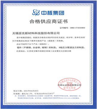 中核集團(tuán)合格供應(yīng)商證書(shū)